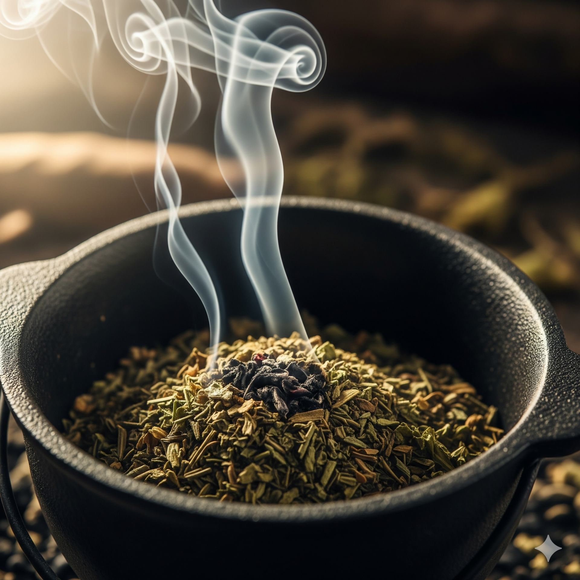 🔹 Fumigation Blend – A fierce smoke made of powerful clearing herbs to break what clings and purge stagnant energy from your body and space.